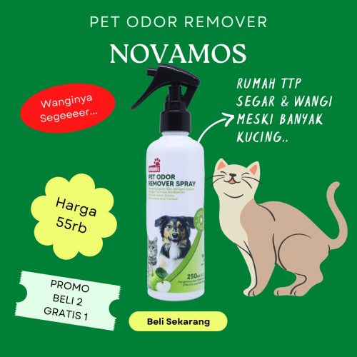 Novamos Odor Remover adalah spray penghilang bau kotoran hewan. Sekali semprot atasi bau dalam 5 detik.